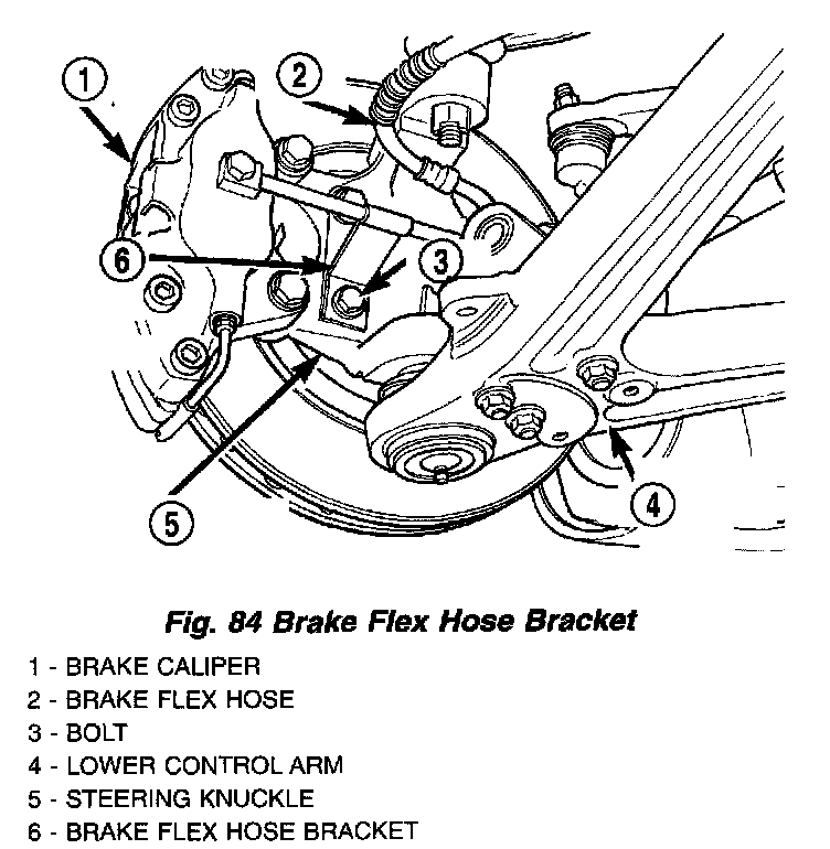 9. Align the brake hose bracket with the hole in steering knuckle. Install the hub/bearing attaching bolt. Tighten the hub/bearing attaching bolt to a torque of 61 Nm (45 ft. lbs.).