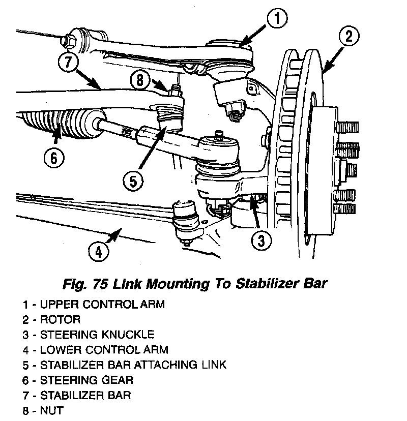 3. Remove the nuts attaching the stabilizer bar attaching links to the stabilizer bar.