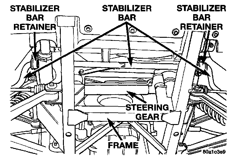6. Remove stabilizer bar from vehicle out through either left or right inner fender area.