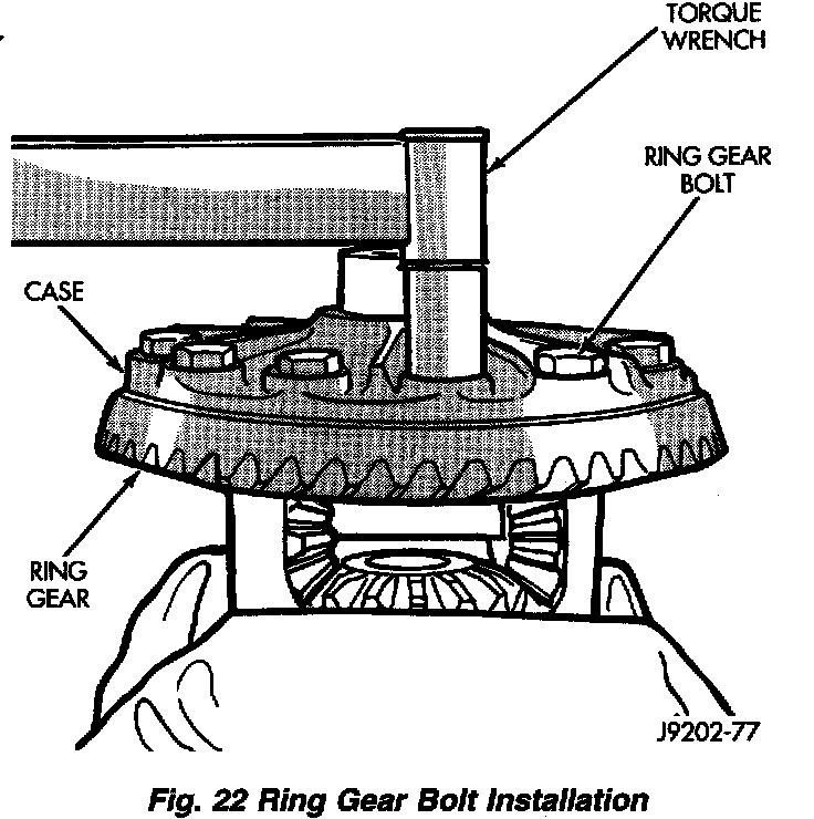 1. Invert the differential case and start two ring gear bolts. This will provide case-to-ring gear bolt hole alignment.