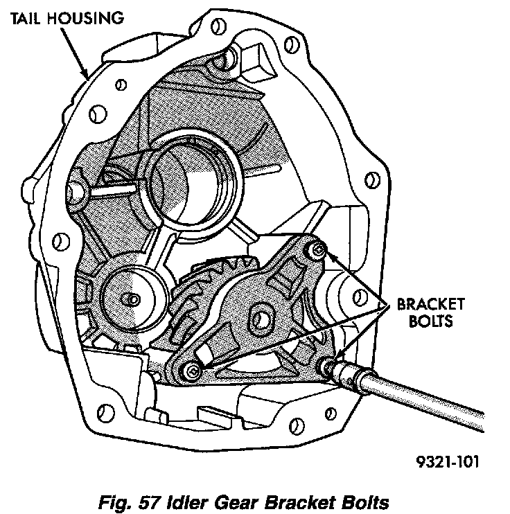 Remove the idler gear bracket bolts. Then remove the bracket.