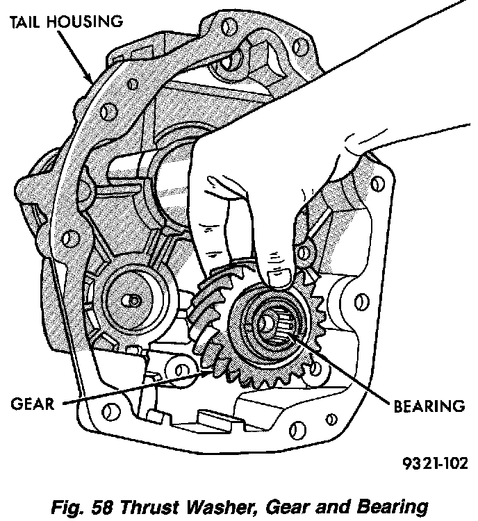 Remove thrust washer, gear and bearing.
