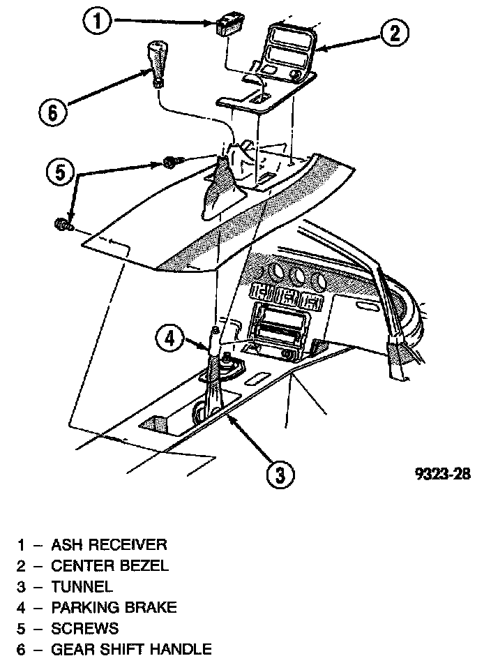 1. Remove instrument panel center bezel. Disconnect the cigar lighter, power window switch and rear window defogger switch wire connectors.