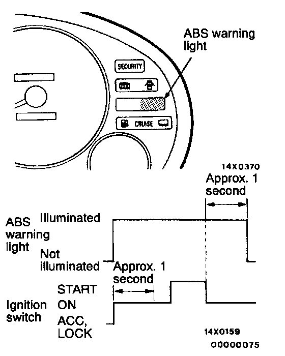 2. When the ignition switch is turned to "START", to start the engine, the ABS warning light switches off after approx. 1 second.