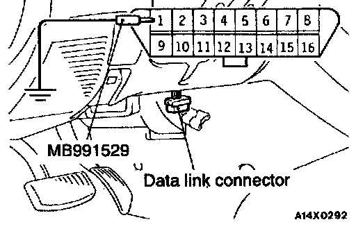 1. Use the special tool (diagnostic trouble code check harness) to ground the terminal 1 of the data link connector.