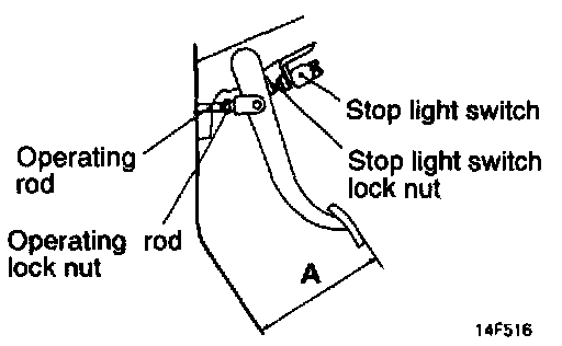 b. Adjust the brake pedal height by turning the operating rod with pliers (with the operating rod lock nut loosened), until the correct brake pedal height is obtained.