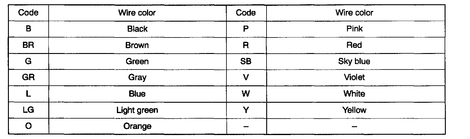 Wire colors are identified by the color codes listed.