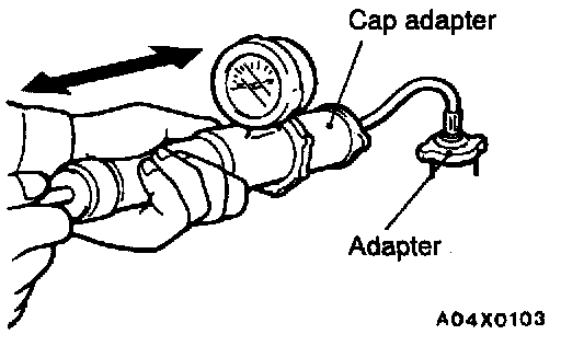 Install a radiator cap tester and apply 160 kPa (23 psi) pressure, and then check for leakage from the radiator hose or connections.