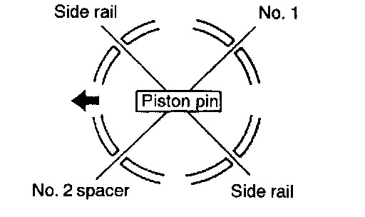 (2) Arrange the piston ring and oil ring gaps (side rails and spacer) as shown in the illustration.