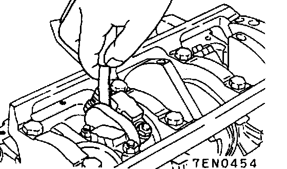 (5) Remove the bolts and gently remove the crankshaft - bearing cap.