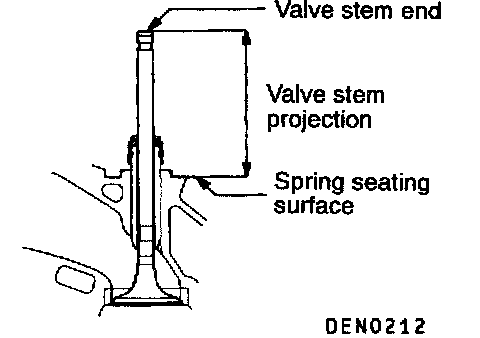 (1) Assemble the valve, then measure the valve stem projection, between the end of the valve stem and the spring seating surface. If the measurement exceeds the specified limit, replace the valve seat.