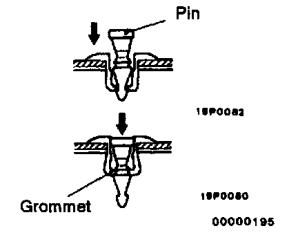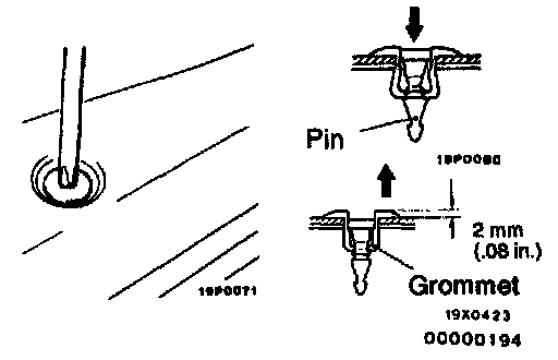 CAUTION: Do not push the pin inward more than necessary because it may damage the grommet, or the pin may fall in, if pushed too far.