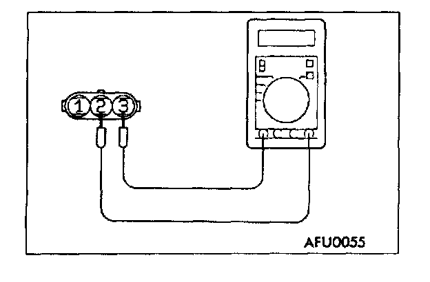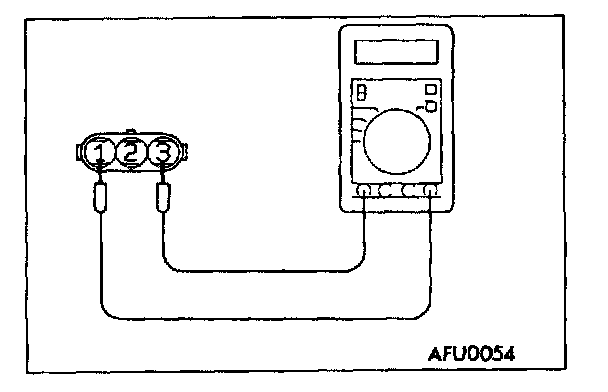 2. Measure the resistance between the throttle position sensor side connector terminal 1 and terminal 3.