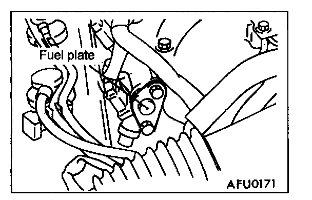 CAUTION: Cover the fuel plate with shop towel to prevent splash of fuel that could be caused by some residual pressure in the fuel pipe line.
