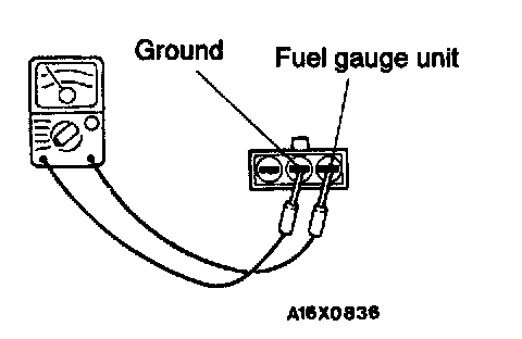 1. Check that the resistance value between the fuel gauge terminal and ground terminal is at standard value when the fuel gauge unit float is at point F (highest) and point E (lowest).