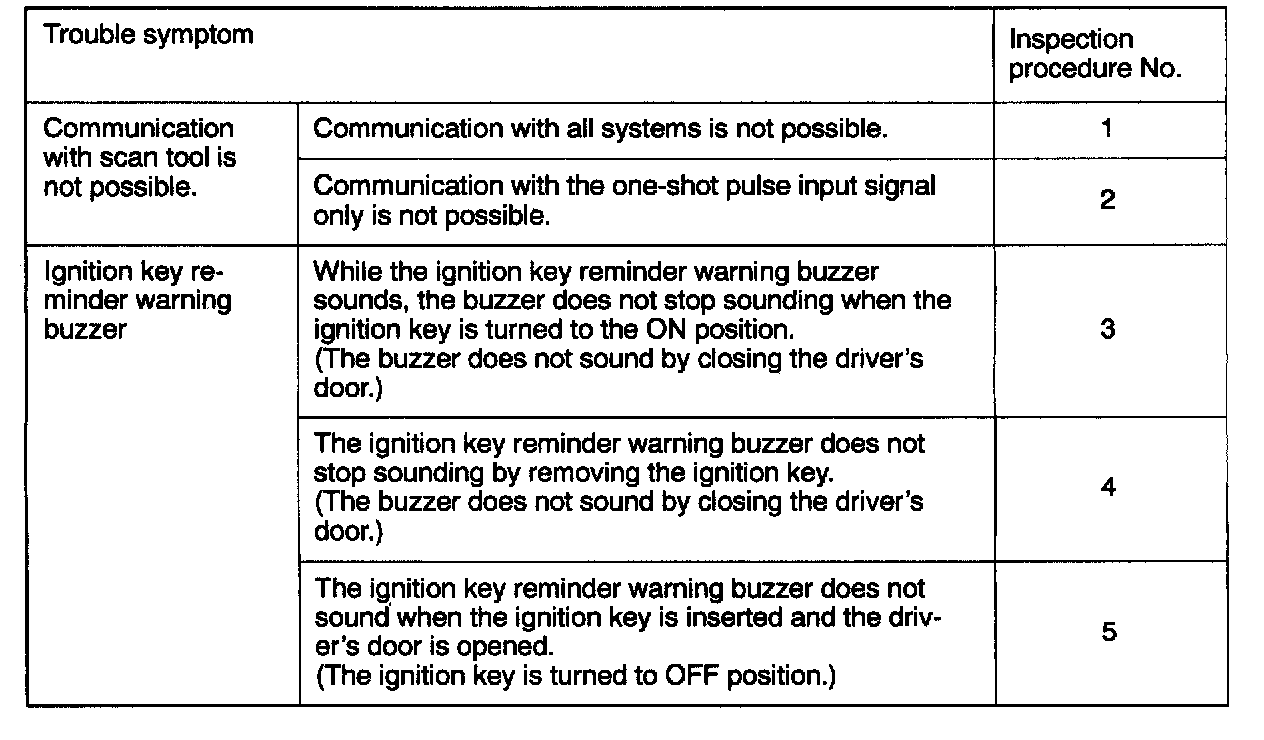 Inspection Chart For Trouble Symptoms