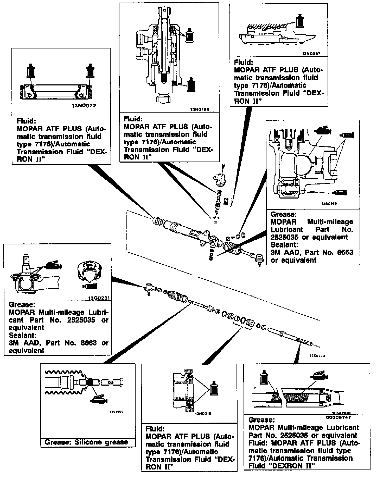 Grease: MOPAR Multi-mileage Lubricant Part No. 2525035 or equivalent