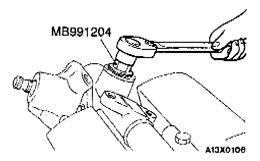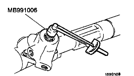 2. In neutral position, rotate pinion shaft clockwise one turn/4 - 6 seconds with special tool. Return rack support cover 30° - 60° and adjust torque to the standard value.