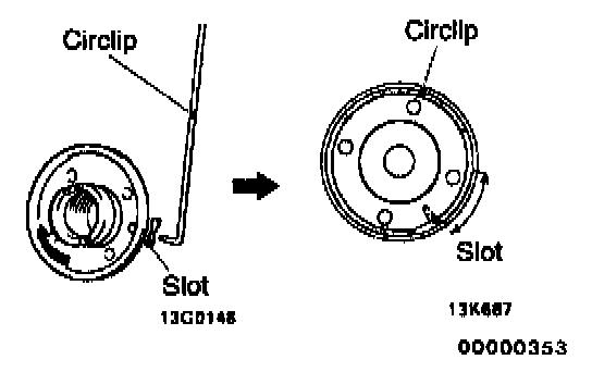 Insert circlip to rack stopper hole through cylinder hole. Turn rack stopper clockwise and insert circlip firmly.