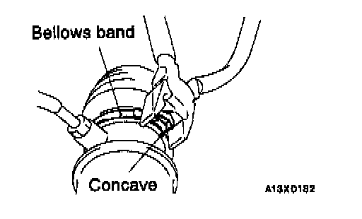 2. Use a plastic hammer or similar to bend the convex section of the bellows band as shown in the illustration.