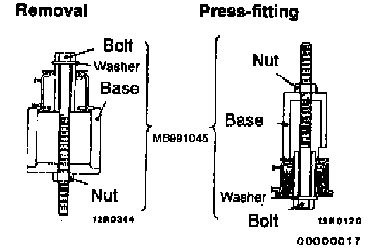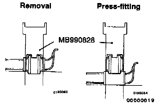 1. Use the special tool to drive out and press-fit the crossmember bushing C.