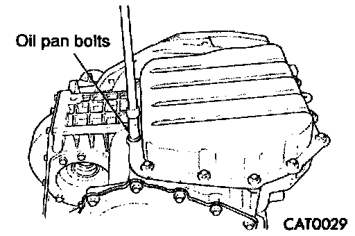 Caution: Do not intermix clutch discs or plates, or the unit might fail.1. Remove oil pan bolts.