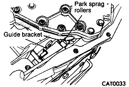 5. Use a screwdriver to push park sprag rollers away from guide bracket.