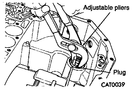 10. Using adjustable pliers, pull out low/reverse accumulator plug.