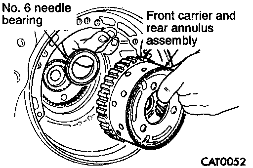 24. Twist and pull to remove front carrier and rear annulus assembly. Remove No. 6 needle bearing.