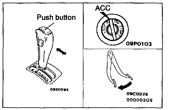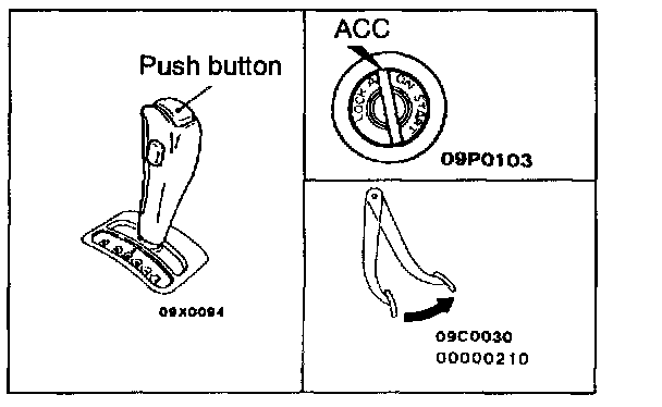 2. Check that, under the following conditions, the selector lever can be moved from the "P" position to any other position.