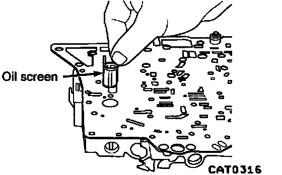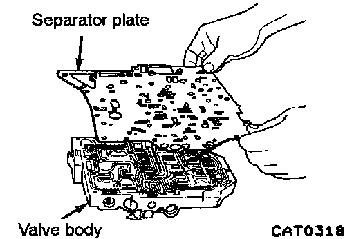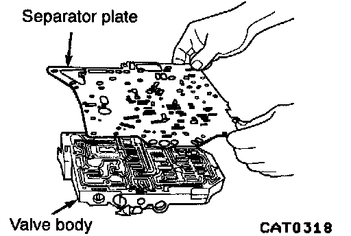 12. Remove separator plate from valve body. Remove O/D clutch check ball and oil screen.