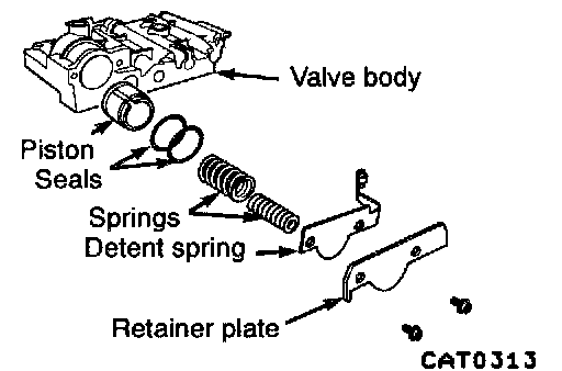 4. Install 2 - 4 accumulator (Piston, Seals and Springs), Detent spring and Retainer plate into valve body.