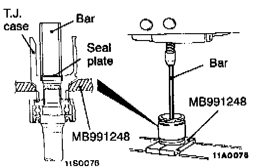1. Use the special tool to remove the inner shaft assembly, together with the seal plate, from the T.J. case.