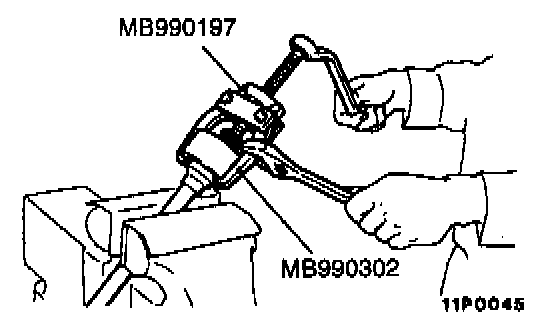 1. With the drive shaft secured vertically, pinch positively the portion to be crimped of the band between the tips of the special tool.