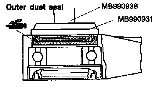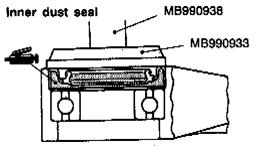 2. Use the special tools to install the dust seal so that its surface runs even with that of the center bearing bracket.