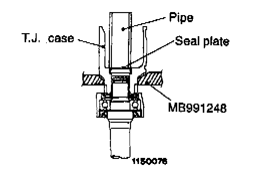 3. Use a pipe [0 30 mm (1.18 inch)] to press the seal plate into the T.J. case.
