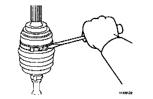 NOTE: If the boot is reused, wrap plastic tape around the drive shaft spline so that the boot is not damaged when it is removed.