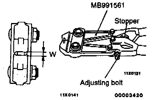 11. Adjust the width of opening in the special tool (W) to standard value in the same manner as described in (4).