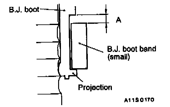 5. Install the boot band (small) against the projection at the boot end to provide clearance A as shown in the illustration.