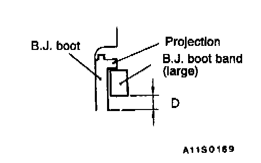 12. Install the boot band (large) against the projection at the boot end to provide clearance D as shown in the illustration.