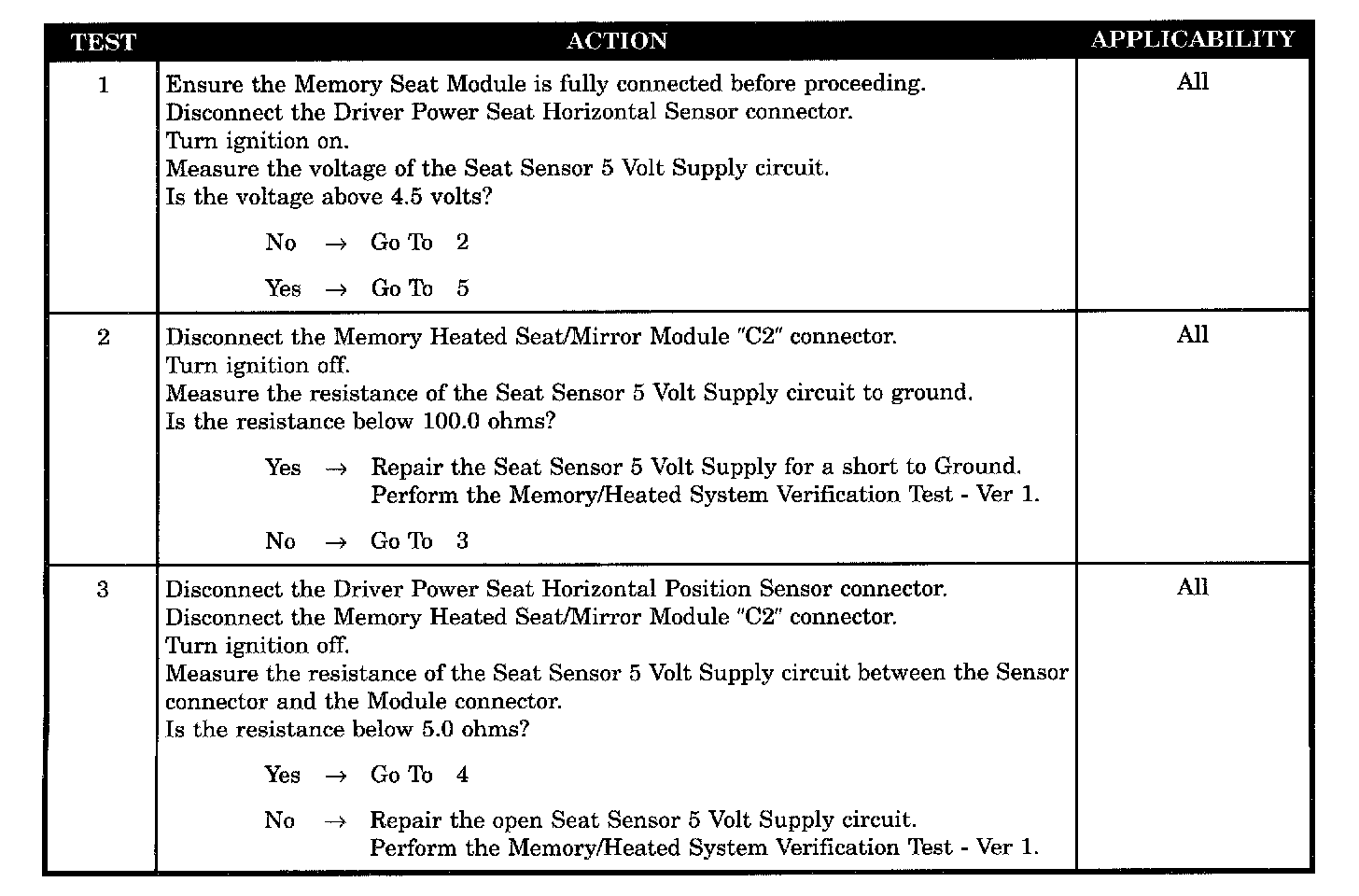 This condition is immediately set when the seat motor potentiometer feeds a value lower than the Memory Heated Seat/Mirror Module has stored in EEPROM.