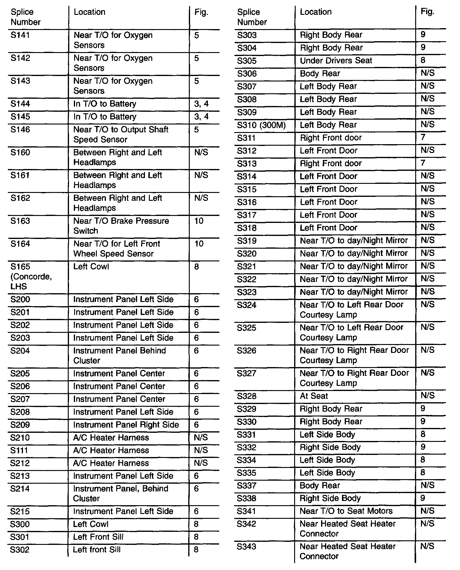 Splice Locations Component Index (Part 2 Of 3):