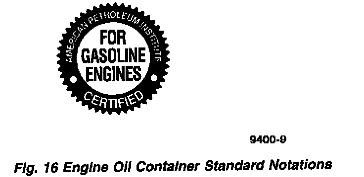 Standard engine oil identification notations have been adopted to aid in the proper selection of engine oil. The identifying notations are located on the label of engine oil plastic bottles and the top of engine oil cans (Fig. 16).
