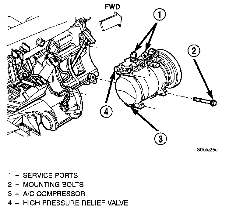 The A/C compressor may be unbolted and repositioned without discharging the refrigerant system. Discharging is not necessary if removing the compressor clutch/coil assembly, engine, cylinder head, or alternator.