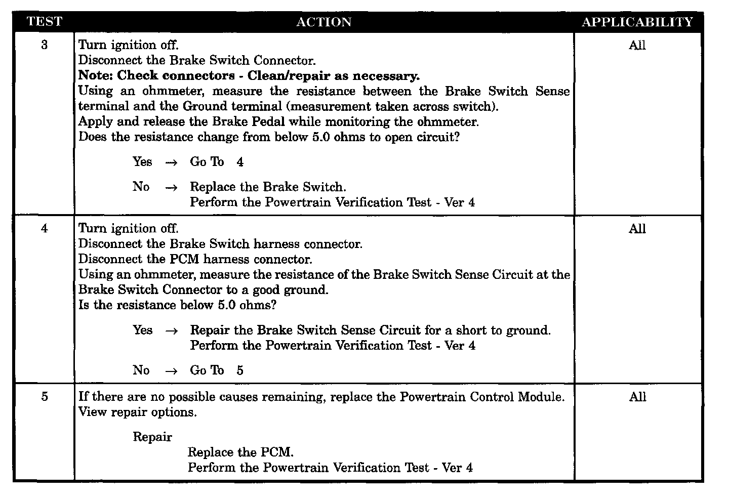 This symptom is diagnosed using the test P0703 - BRAKE SWITCH SENSE CIRCUIT.