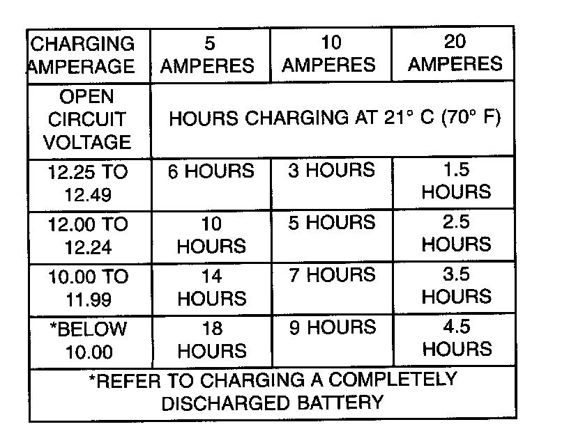After proper charging time required is determined, refer to the individual battery charger instructions for proper charging procedures.