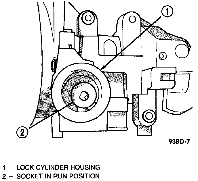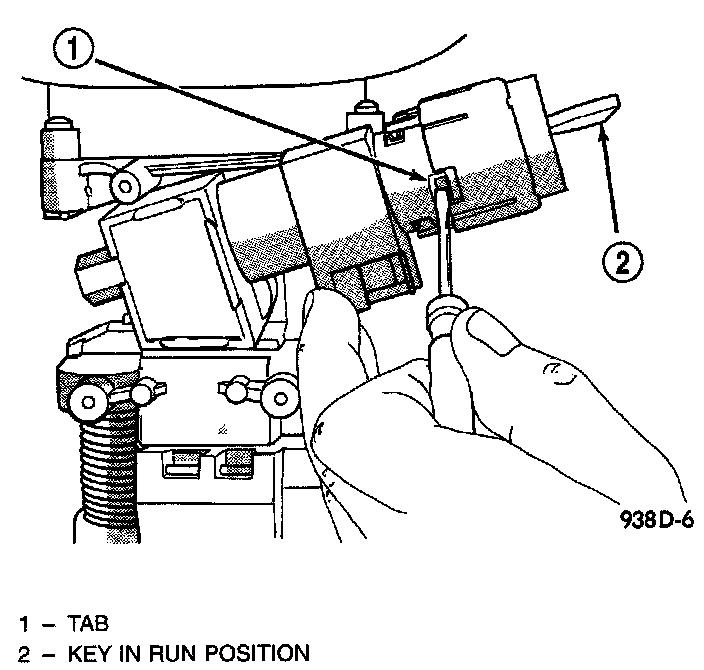 4. Turn the ignition key to the run position. When ignition switch is in the run position, the lock cylinder retaining tab will depress.