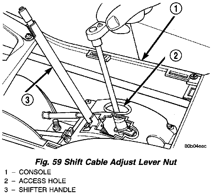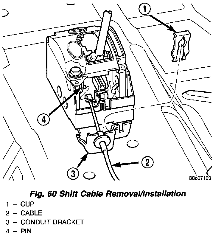 4. Disconnect shifter cable frown shift pin (Fig. 60) and disconnect cable from shifter assembly bracket.