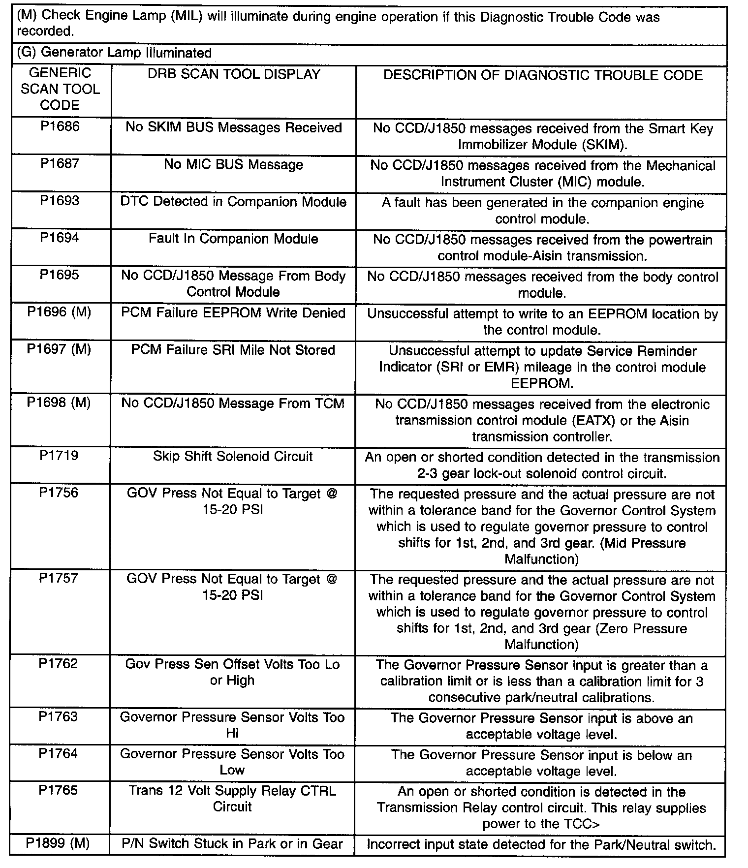 Diagnostic Trouble Code Description Chart P1686 - P1899: