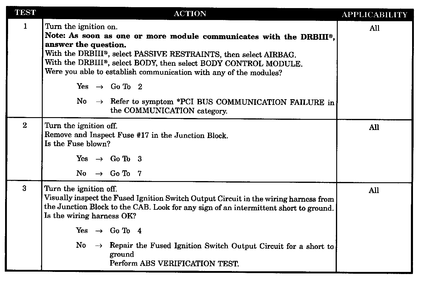 CAB DEFECTIVE - FUSED IGNITION SWITCH OUTPUT SHORTED TO GROUND